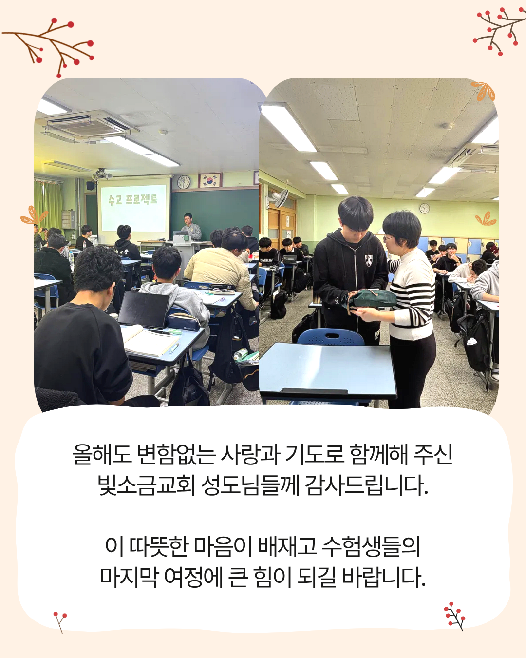 따뜻한 마음이 배재고 수험생들의 마지막 여정에