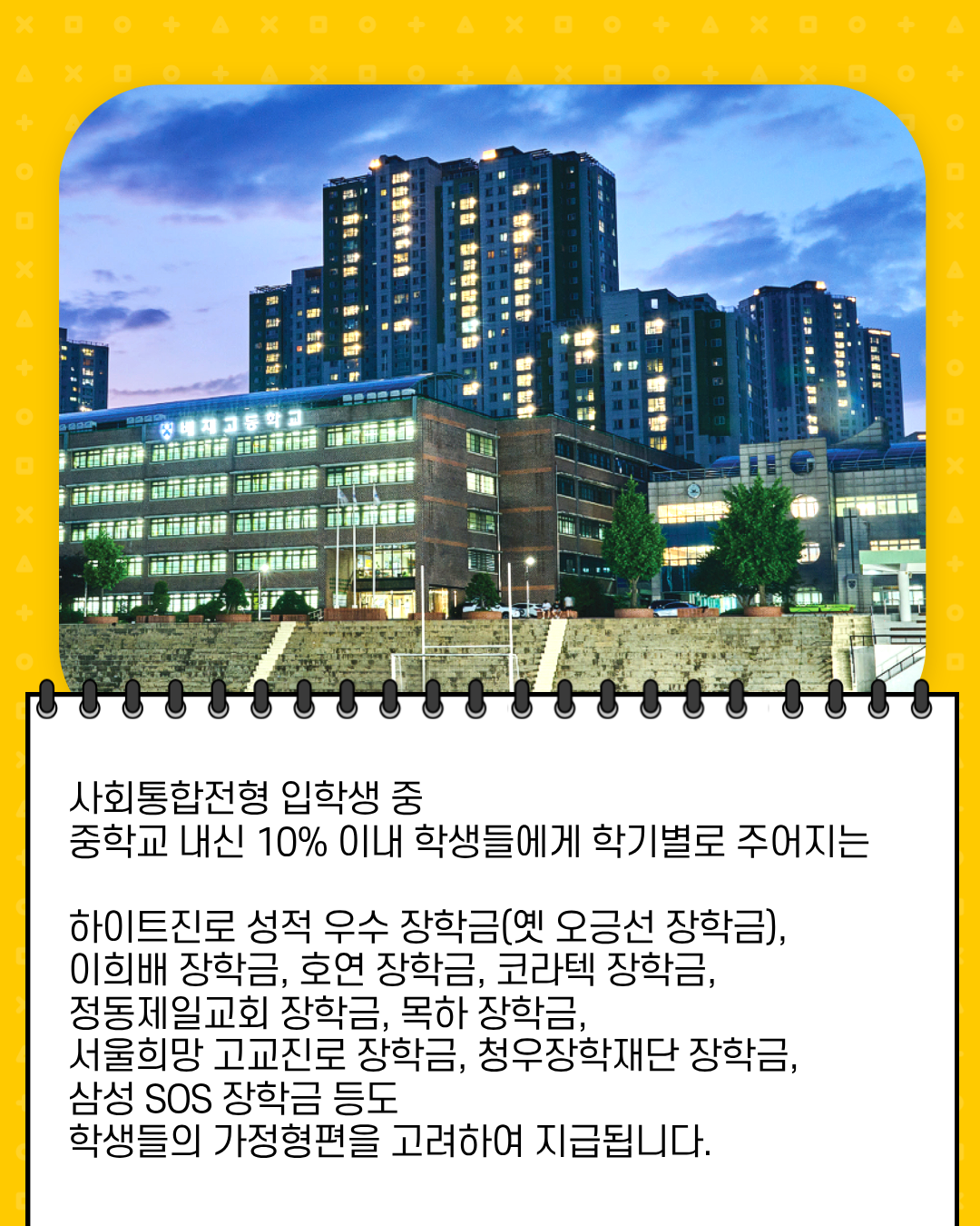 배재고등학교의 다양한 장학제도,