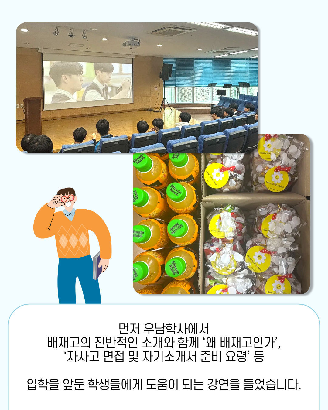 배재고를 방문해 진로 체험의 시간을 가졌습니다.